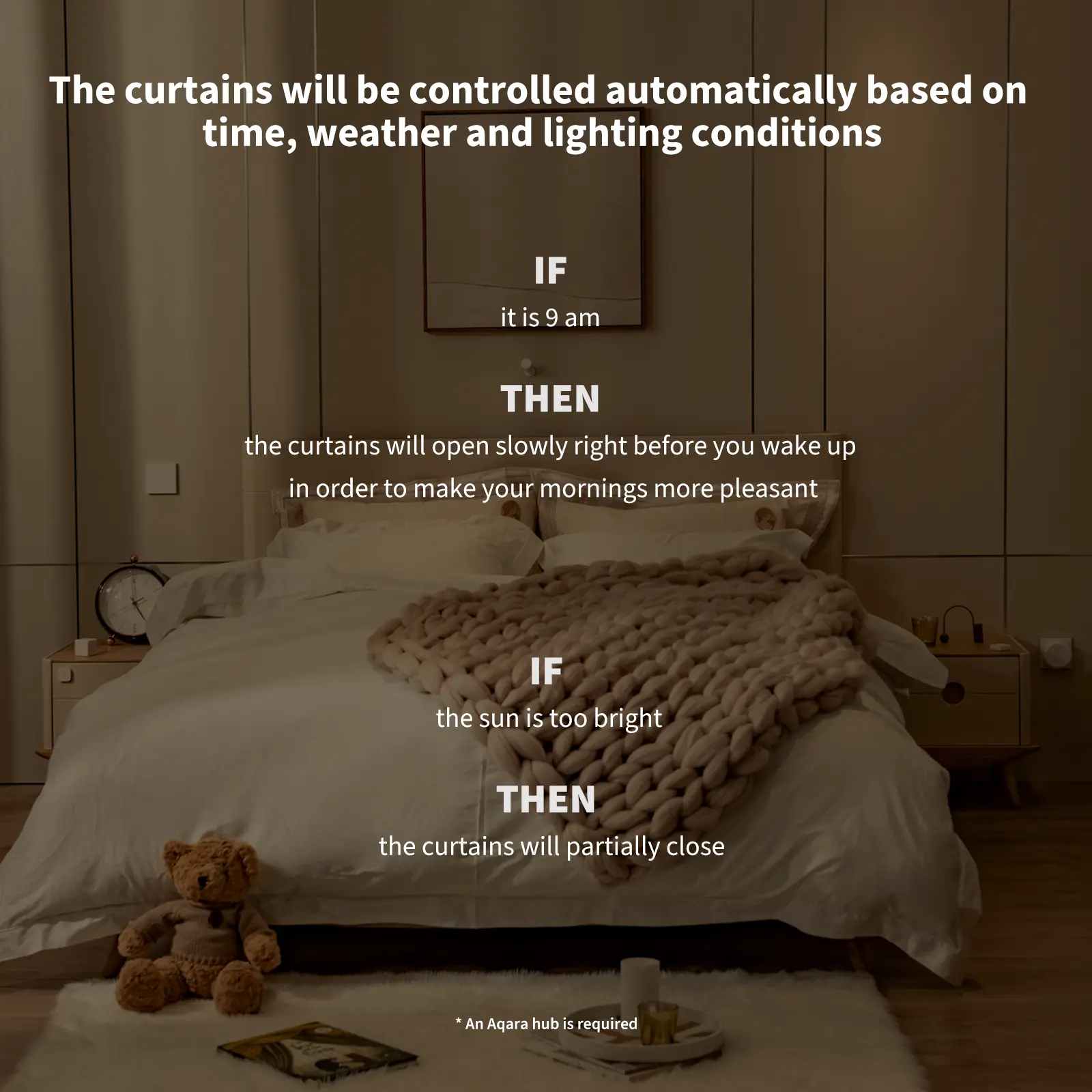 - Create a peaceful, intelligent retreat with Aqara smart devices in your bedroom. Automatically close the curtains and dim the lights when it’s time to wind down, or wake up gently as natural light filters in and soft lighting turns on. Aqara presence sensors detect movement and adjust lighting or climate accordingly, ensuring comfort without lifting a finger.