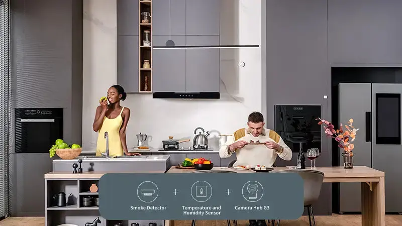 - Temperature and humidity sensors help you monitor kitchen conditions. Trigger the exhaust fan or adjust smart blinds automatically if heat or humidity rises.