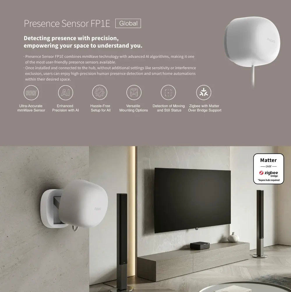 • Multi-Ecosystem Support with Matter: An Aqara Zigbee 3.0 Hub is required, except when using the Camera Hub G2H. The hub is sold separately. When paired with any Aqara Zigbee 3.0 hub (other than the Camera Hub G2H Pro), the Presence Sensor FP1E supports Matter-over-bridge*** and is compatible with major third-party platforms such as Apple Home, Alexa, Google Home, SmartThings, Home Assistant, IFTTT and Homey.